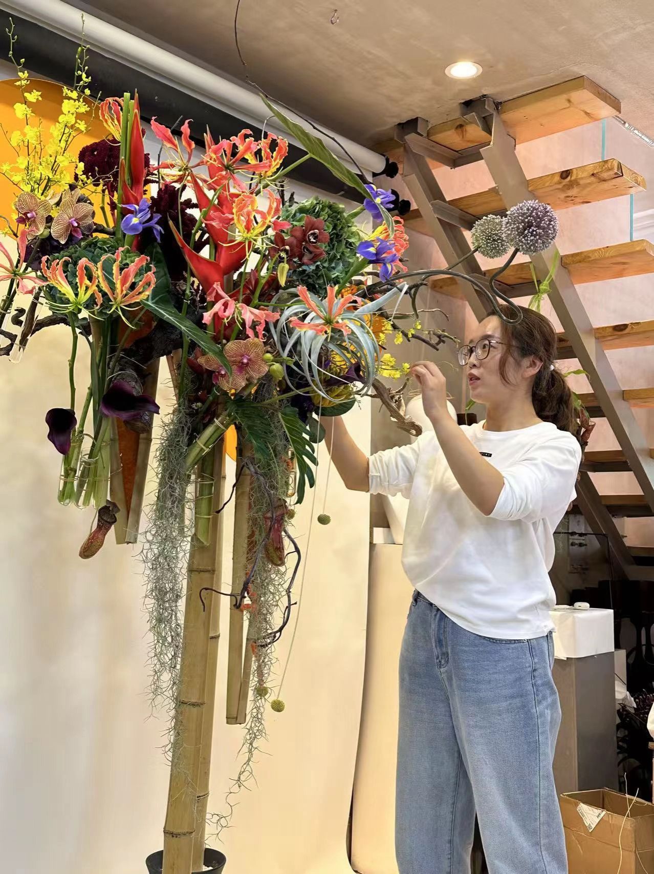 为了备赛2024年的世界职业院校技能大赛花艺赛项,董彦娜毅然投身于花艺领域的专业培训。她遍访辽宁、北京、广西、浙江、山东等地,一年的行程达10000多公里,在家的日子不足6个月。她不是在出差学习,就是在备赛的路上。在学习的过程中,她不断汲取先进的花艺理念与技术。她深知,只有将这些最前沿的知识和技能带回学校,传授给学生,才能在未来的比赛中脱颖而出。9月底,接到教育部的大赛实施方案,面对“三自命题、五维评价”的全新赛制,由于缺乏经验,她只能一步步摸索前行。这一过程耗费了大量的心血,从深入剖析比赛规则,到精进花艺技能,再到作品的不断优化、讲解稿的精心打磨,每一个环节她都力求完美。