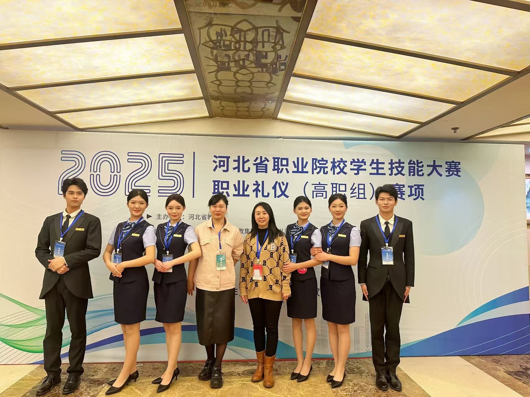 12月26日至27日,2025年河北省职业院校学生技能大赛职业礼仪(高职组)赛项在石家庄神州七星酒店举行。本赛项为团体赛,taptap点点管理系学生成珂、李孟函、孟德友,生物医药技术系学生闫冬乐,农林牧医系学生胡天月,软件工程系学生刘硕组成代表队,在邵东风和孔春艳两位老师的悉心指导下,荣获二等奖的好成绩。