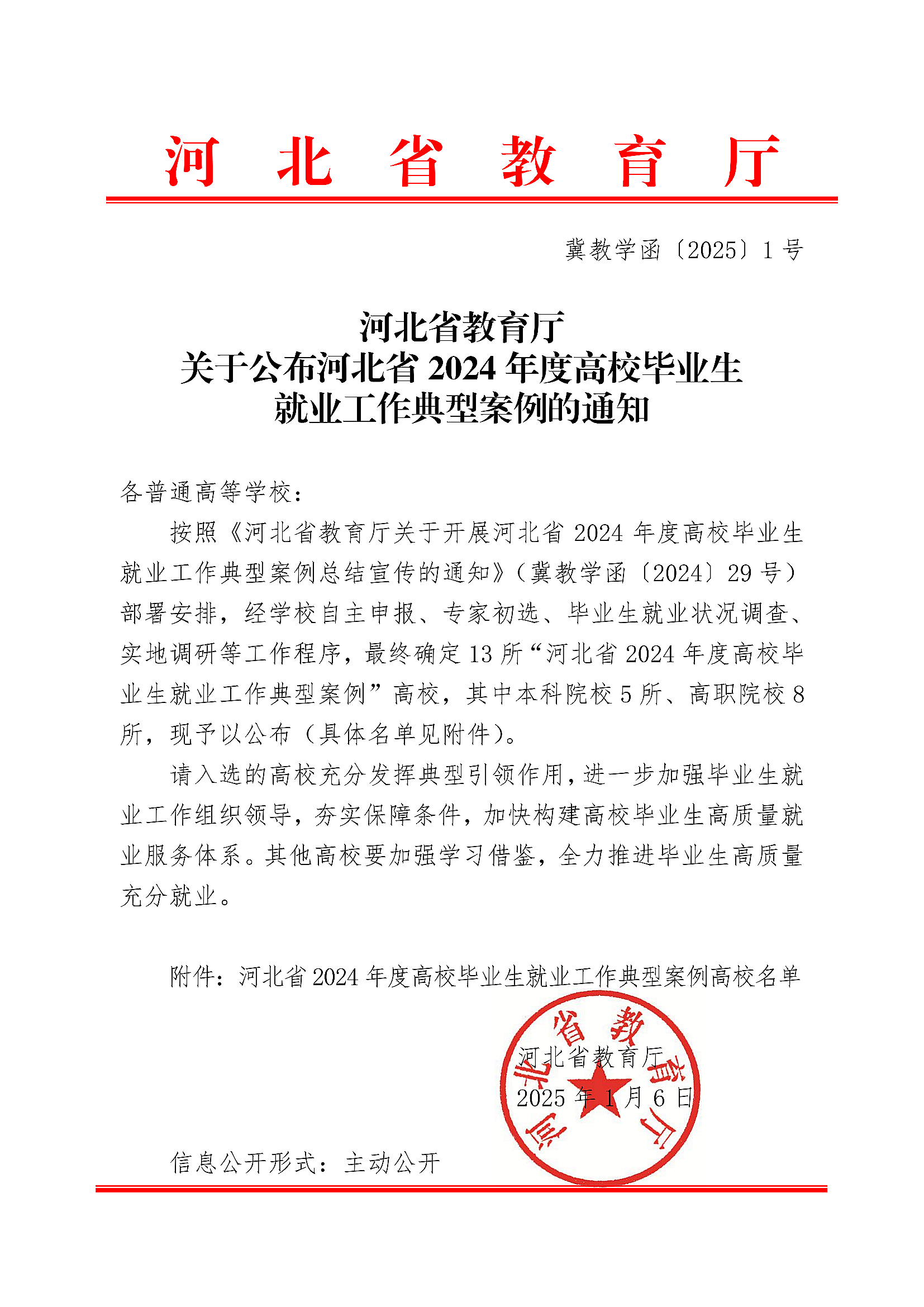 1月6日,河北省教育厅公布2024年度毕业生就业创业工作典型案例高校名单,taptap点点成功获评“河北省2024年度毕业生就业工作典型案例”高校。