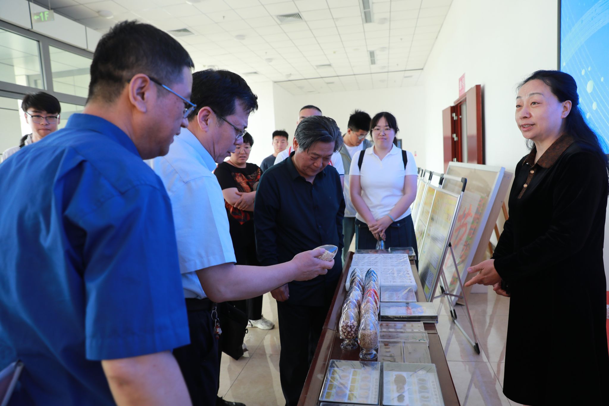 活动现场设置了“神奇种子”展台、农产品质量安全检测体验区等互动项目。与会领导和专家与师生们一同参观展区,在河北省农林科学院马春红研究员的讲解下,深入了解现代农业科技应用。丰富的实物展示和沉浸式体验,让师生们切身感受到科技对农业发展的推动作用。