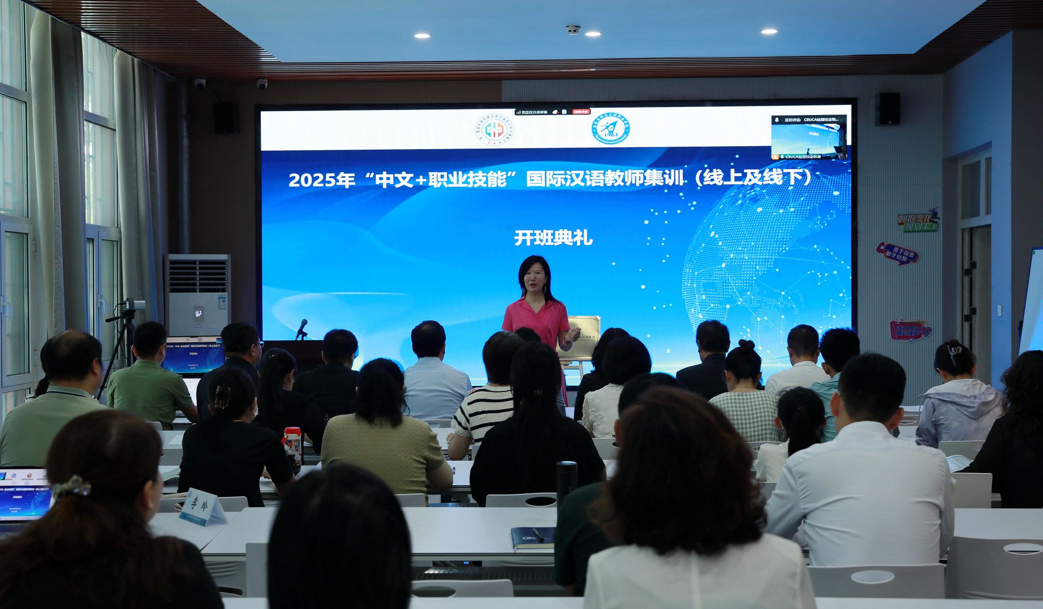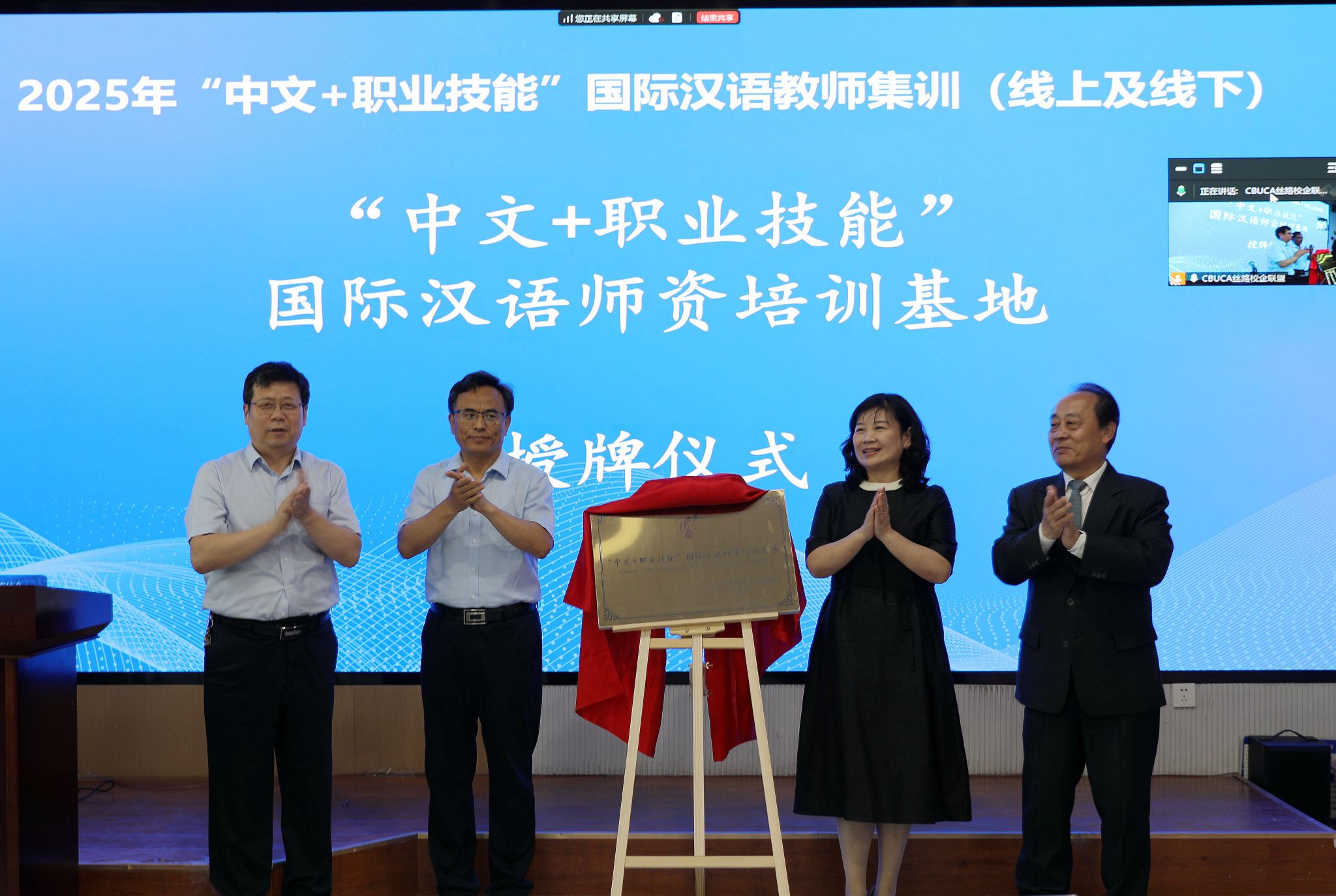 6月6日上午,全国首家以“中文+职业技能”为特色的国际汉语师资培训基地在taptap点点举行揭牌仪式。院长许征程、副院长赵伟、“一带一路”国家院校和企业交流协会中方理事会秘书长董进、北京语言大学朱庆明教授出席仪式,广东农工商职业技术学院、上海城建职业学院、江西旅游商贸职业学院、内蒙古化工职业学院、石家庄铁路职业技术学院等近二十所院校代表及参培学员100余人通过线下线上参会。