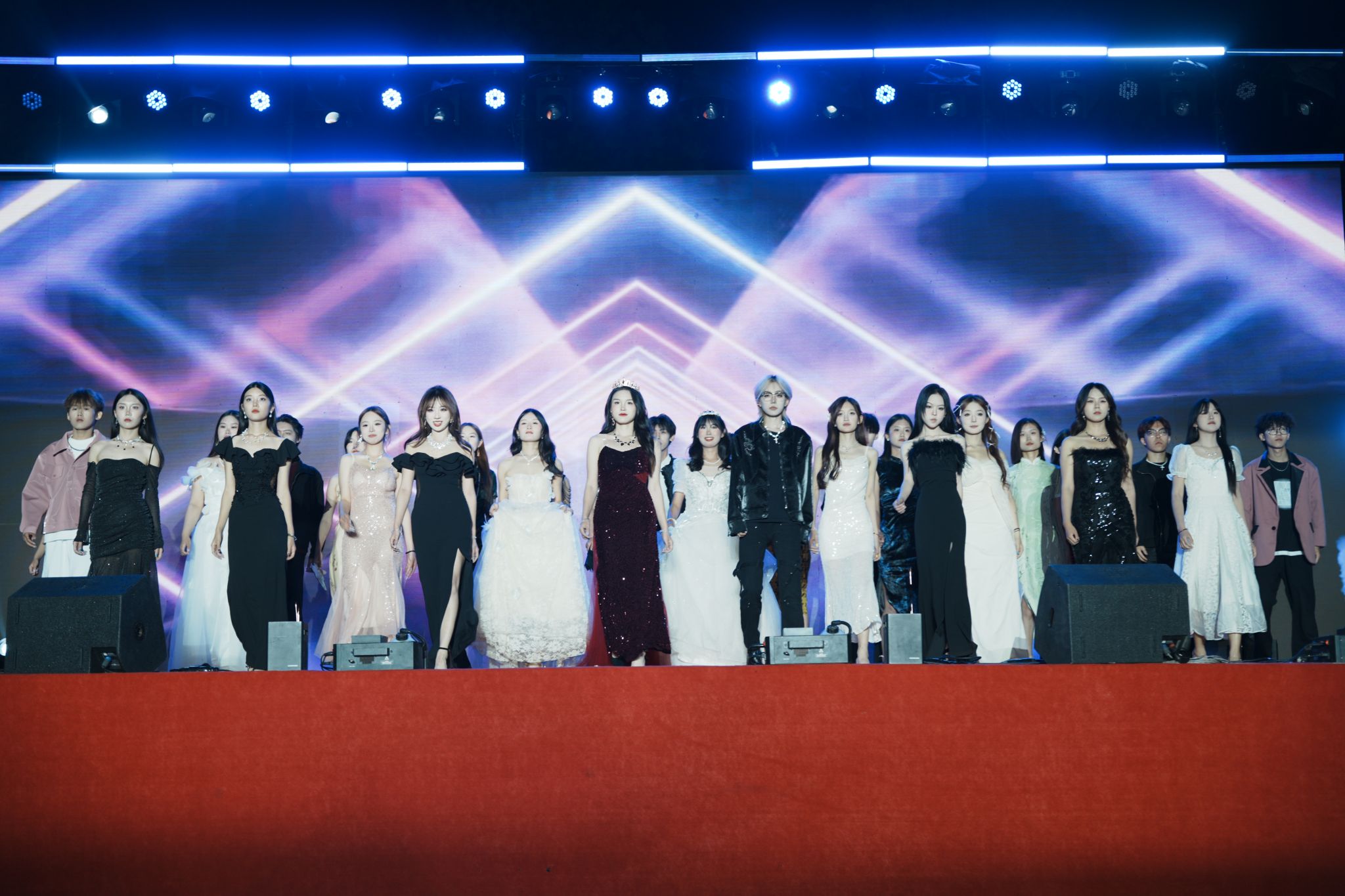 晚会在激昂的开场词中正式拉开帷幕。六位主持人以“江河奔涌,终汇于海;繁星闪烁,共聚银河”的诗意开场,寓意2025级新生如百川汇流般相聚信工学院,开启人生新篇章。整场晚会节目精彩纷呈,亮点频出。开场节目《超级英雄》以热血澎湃的表演瞬间点燃全场气氛;舞蹈《寄明月》将传统扇舞与现代编舞完美融合,展现东方美学韵味;歌伴鼓《骁》用清新旋律唱出青春心声;维吾尔族舞蹈以其独特的民族风情和欢快节奏赢得满堂喝彩。石家庄市歌舞团的歌手李志宇应邀为同学们带来了歌曲《蒙娜丽莎的眼泪》《倒数》,专业的表演和极具穿透力的嗓音让师生们叹为观止,更是将晚会推向高潮。川剧《变脸》节目惊艳全场,表演者手法娴熟,瞬息万变的创意T台秀展现了学子们的奇思妙想,他们将专业元素与时尚设计相结合,体现了信工学子的翩翩风采。歌伴舞《春天》用蒙语吟唱传递草原情怀,引发全场大合唱。晚会在歌伴舞《我爱你中国》中圆满落幕。