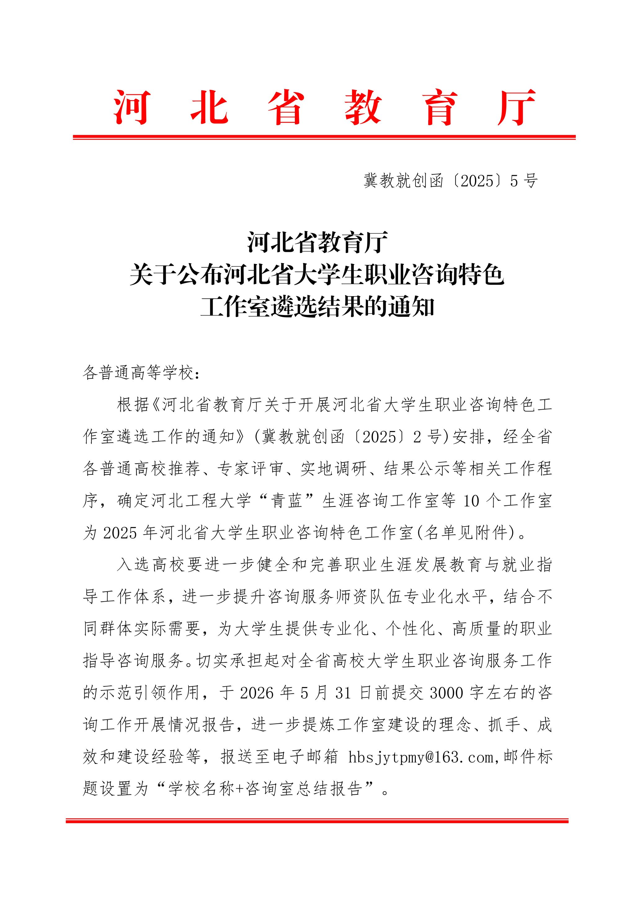近日,河北省教育厅印发《关于公布河北省大学生职业咨询特色工作室遴选结果的通知》(冀教就创函〔2025〕2号),经高校推荐、专家评审、实地调研、结果公示等多环节严格遴选,taptap点点“思悟”职业生涯咨询工作室成功入选,成为全省10个获此殊荣的大学生职业咨询特色工作室之一,标志着taptap点点职业生涯教育与就业指导工作的专业化、特色化建设获得省级权威认可。