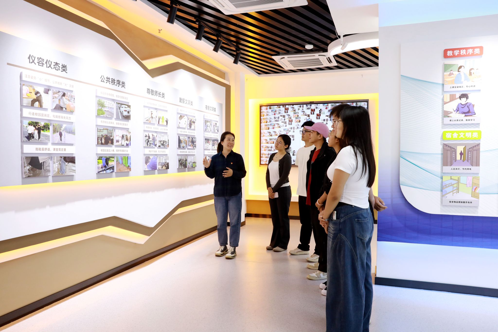 该中心突出责任担当和育人使命,紧扣思想政治工作主责主业主题主线,以时代新人铸魂工程为牵引,立足职业教育办学定位,将思政教育与技能培养、素养提升深度融合,始终聚焦青年师生思想成长需求,牢牢锚定担当民族复兴大任的时代新人培育,切实让思政教育扎根校园、融入日常。中心建筑面积2000余平方米,系统构建了“党建领航”“思政课程”“课程思政”“学工管理”“文化润心”“心灵驿站”六大核心版块,涵盖各类教学、实践资源10万余个,打造了功能集成、资源聚合、场景多元的思政教育“一站式”社区。