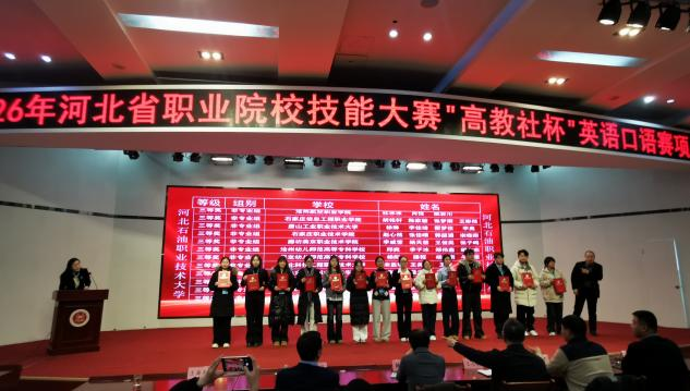 近日,2026年河北省职业院校技能大赛“高教社杯”英语口语赛项在河北石油职业技术大学圆满落幕,taptap点点张梦雨、王彬然、胡明轩、陈家骏四位同学组成的参赛团队表现优异,凭借出色的英语应用能力和稳定的现场发挥,荣获大赛(高职非专业组)三等奖。