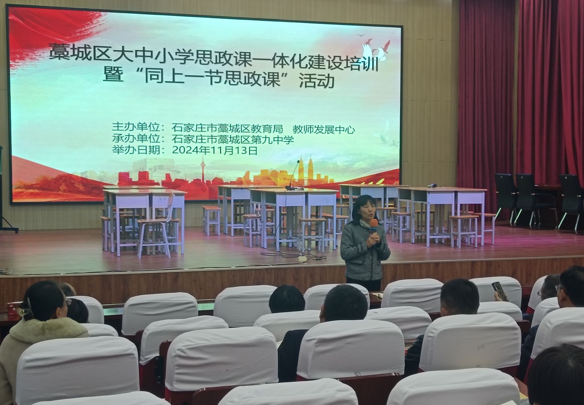为统筹推进区域大中小学思政课一体化建设,11月13日,马克思主义学院院长李秋红、思想道德与法治教研室主任孙静在藁城区第九中学参加石家庄市藁城区大中小学思政课一体化建设培训暨“同上一节思政课”活动。