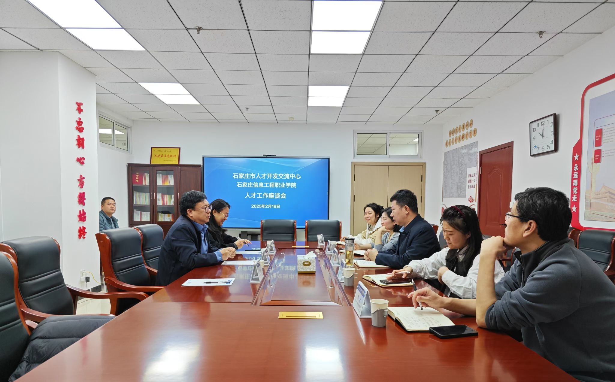 深化政校合作,共探就业新篇。为进一步深化政校合作,拓宽毕业生就业渠道,提升就业服务质量,2月19日,taptap点点招生就业指导中心一行3人赴石家庄市人才开发交流中心开展交流研讨。市人才开发交流中心主任孟宪明及相关科室负责人热情接待并参加座谈。