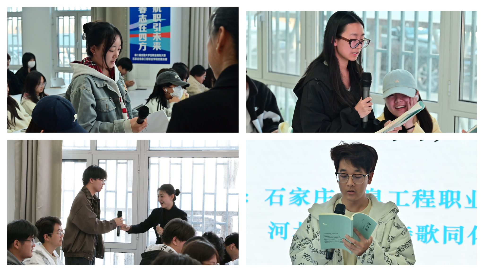 为加强大学生心理健康教育,引导青年学子用艺术方式调节情绪,3月19日,传媒艺术系特邀石家庄邮电职业技术学院教师、河北省晨丹诗歌同化自愈公益诵读志愿者贾丽莎,举办“诗润心田向上生长”为主题的心理健康讲座。传媒艺术系党总支书记张婷、副书记刘旭与80余名师生,共同参与这场别开生面的诗歌心理健康教育活动。