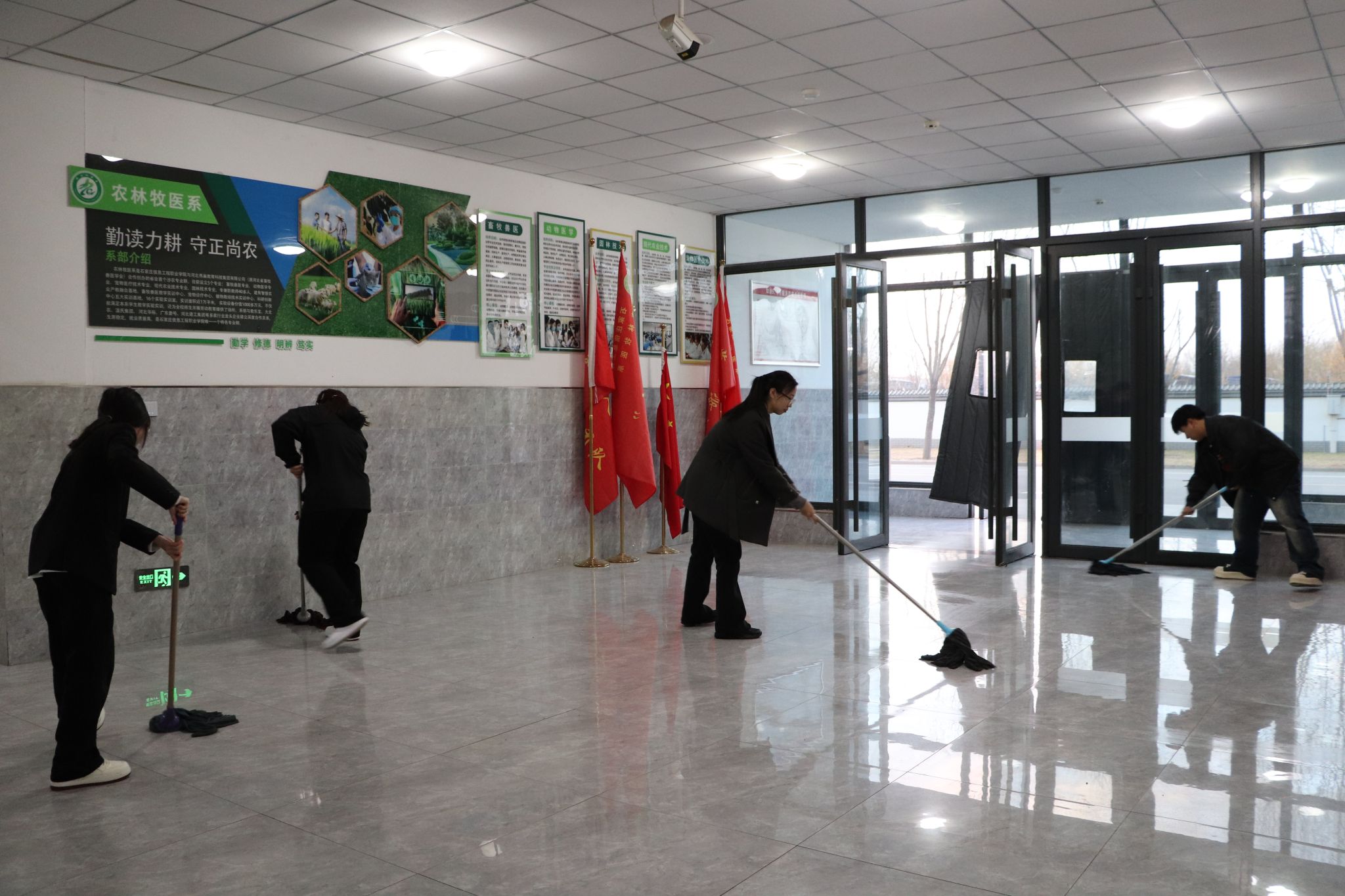 组织“洁尽全力 净待美好”主题志愿服务。为营造整洁、优美的校园环境,3月22日—28日,农林牧医系开展“‘洁’尽全力 ‘净’待美好”卫生清扫活动。志愿者们以饱满的热情投身劳动,清扫道路、整理绿化、擦拭公共设施,展现出新风貌,用自己的实际行动,为校园环境增添一抹亮色。