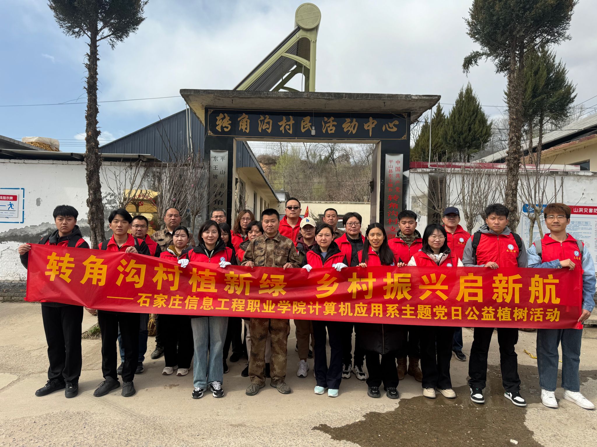为响应国家乡村振兴战略,改善乡村生态环境贡献力量,同时增强党员的社会责任意识与团队协作精神,3月28日,计算机应用系党总支组织师生党员前往石家庄市平山县转角沟村,开展“转角沟村植新绿 乡村振兴启新航”主题党日公益植树活动。