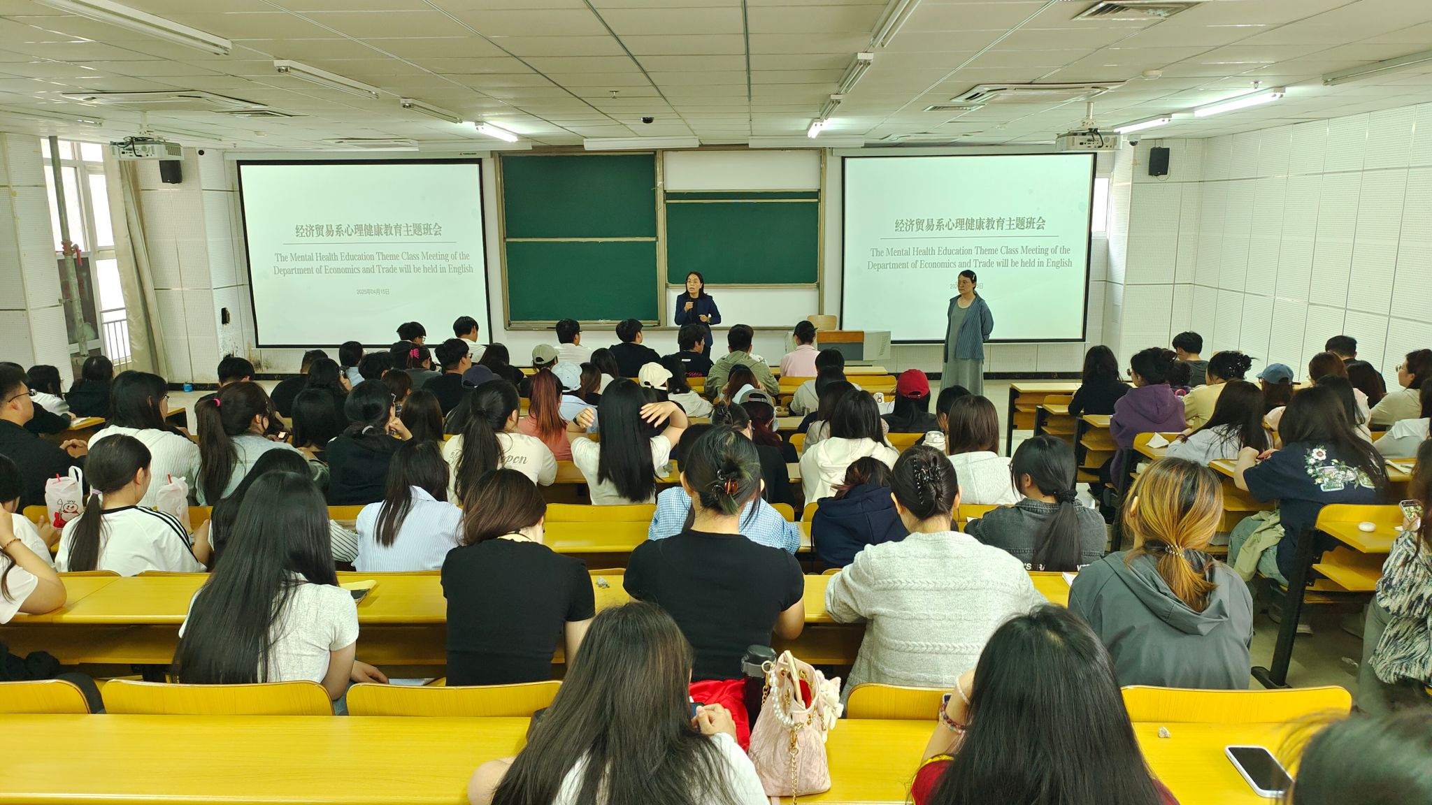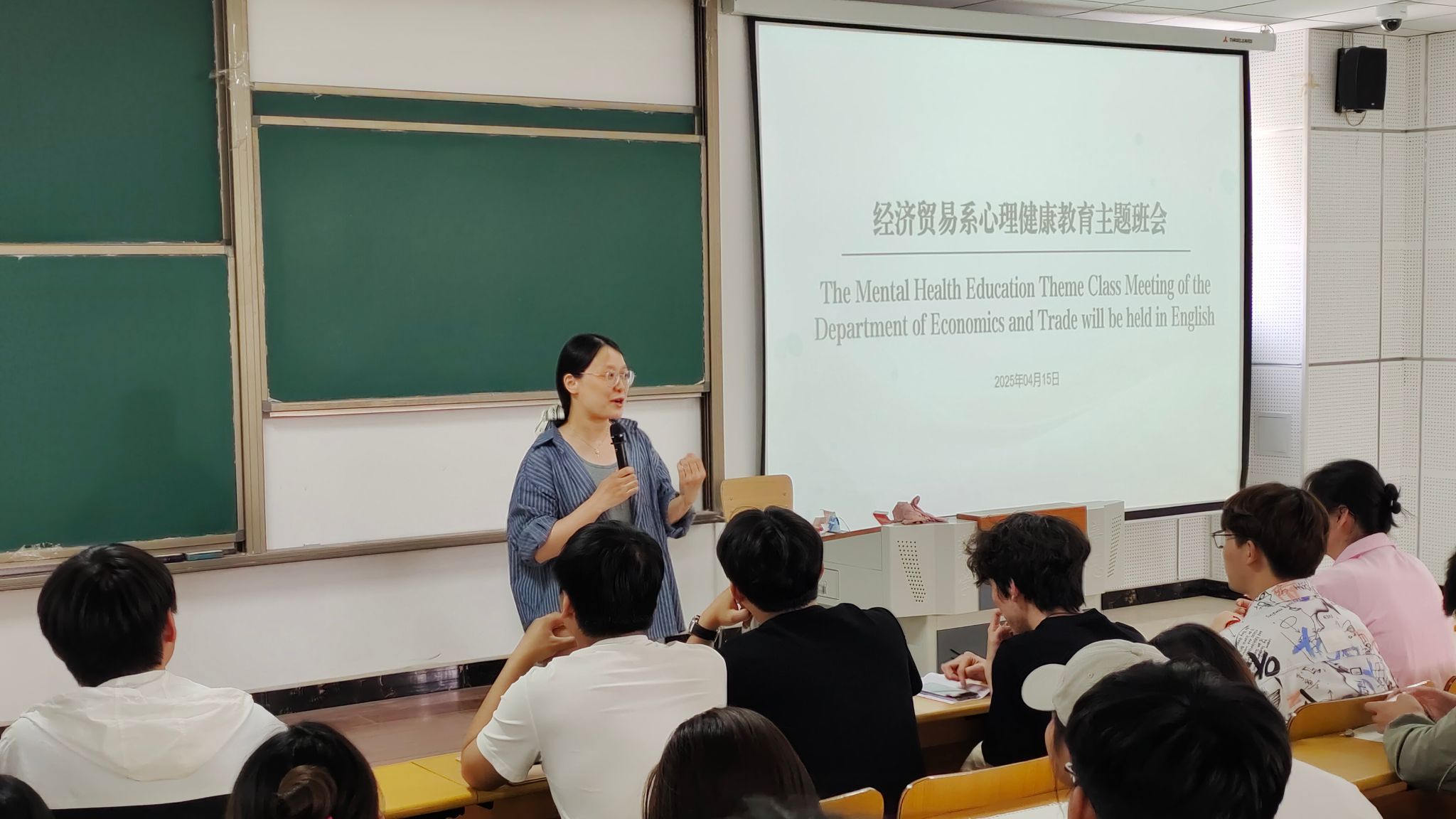 为提升情绪管理能力,增强心理韧性,构建科学心理健康认知体系,预防心理问题,促进心理健康发展,4月15日,经济贸易系在启智2号楼128阶梯教室举办心理健康教育主题班会。辅导员刘聪以“三炼消极情绪石——止澜观澜化茧”为题开展班会。学生管理人员及来自31个班级的心理委员和学生代表共150余人参加本次主题班会。