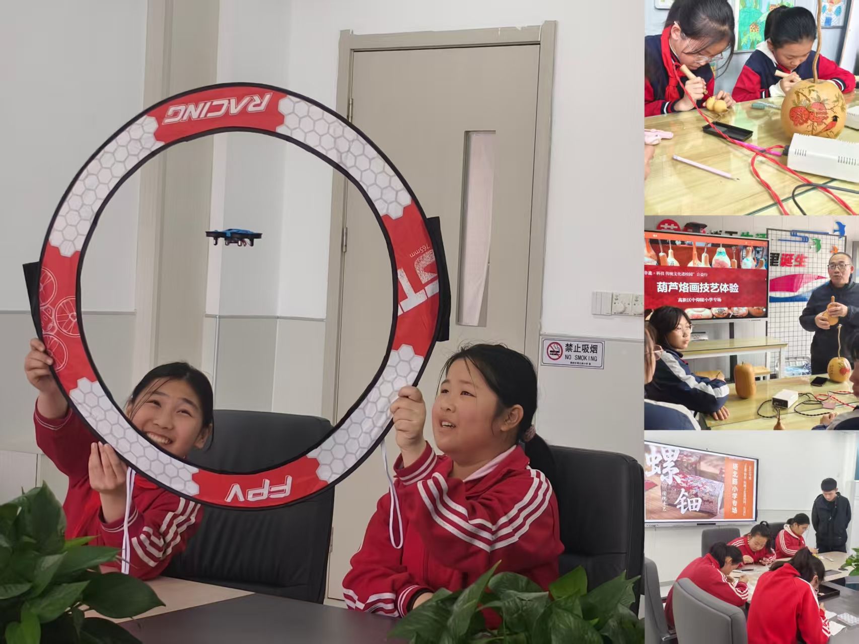 剪纸、非遗螺钿、糖画、牛轧糖制作、蜡染、型糊染、扎染、葫芦烙画,航天科普、救援无人机抛投与喊话、植保无人机喷水,撒播、无人机足球、模拟飞行训练……几十项好玩的技艺与项目走到了中小学生身边,带来的不止是知识,更多的是给校外的“小粉丝们”送去了欢乐。沉浸式、互动式的文化供给,促进了校际间技术与艺术的交流,千年技艺在丰富多彩的校园生活中绽放新光彩。