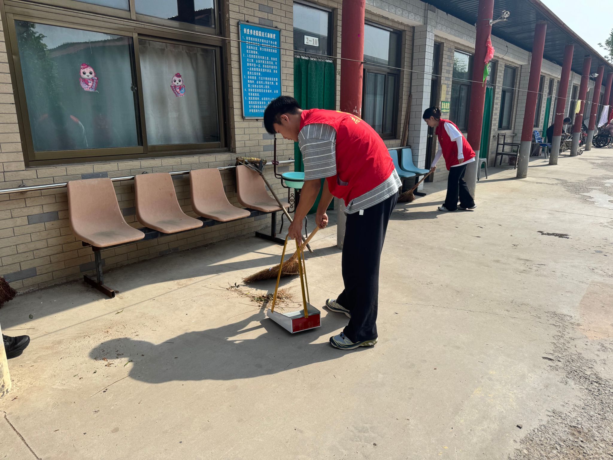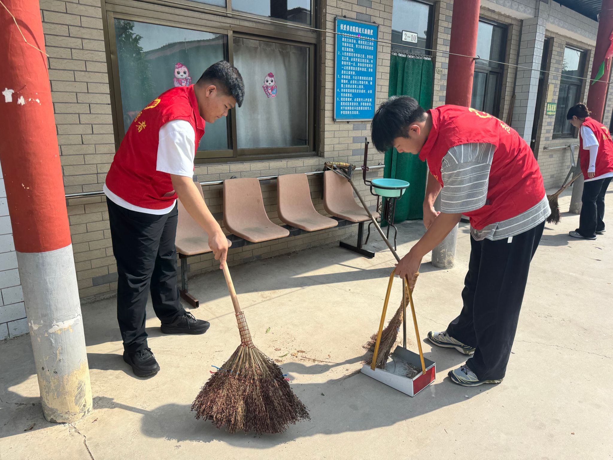 在藁城区恒爱养老院,大家分工明确,有的同学拿起扫帚、抹布,仔细地打扫养老院的各个角落,擦拭窗户、清理地面,为老人们营造干净整洁的生活环境;有的同学则积极协助医生开展义诊工作,耐心搀扶行动不便的老人,认真为他们登记血压等健康信息,还贴心地陪老人们聊天,了解他们的生活状况和需求,倾听他们的故事,为老人们送去关怀与欢乐。老人们脸上洋溢着幸福的笑容,纷纷对同学们表示感谢。