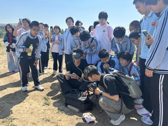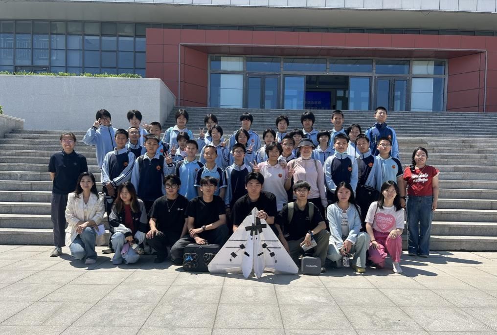 在户外飞行场地,专业飞手操控着无人机进行了精彩的飞行表演。无人机在空中做出俯冲、拉升、旋转等动作,赢得了学生们阵阵欢呼与掌声。表演结束后,部分学生在专业人员的协助下,亲身体验了实际操控无人机飞行的乐趣。通过理论讲解、互动体验与实操演练,师生们深入了解了无人机技术的前沿应用,感受了科技创新的无限魅力。