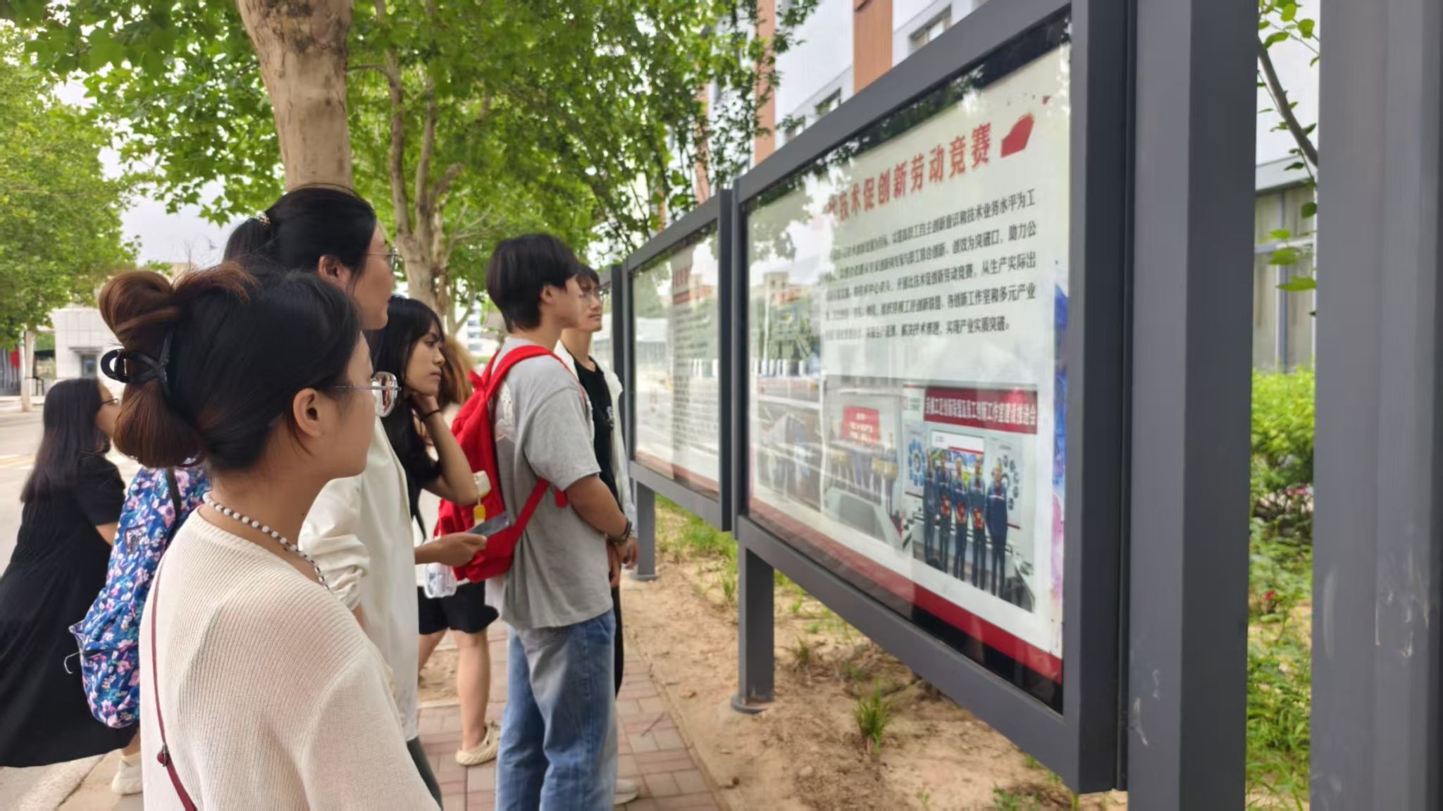 在王勇老师的带领下,师生走进“劳模工匠创新联盟”展厅,通过展板、视频及实物了解了企业攻关创新与人才培养的途径和方法,王老师还与师生们分享了他从普通技工成长为技术能手、劳动模范的奋斗历程,并给出了终身学习的好方法和建议。他的讲述生动诠释了工匠精神的实践内涵,展示了千万名中国产业工人坚守奉献、敢于负责的担当,精益求精、一丝不苟的执着,爱岗敬业、技能报国的青春。