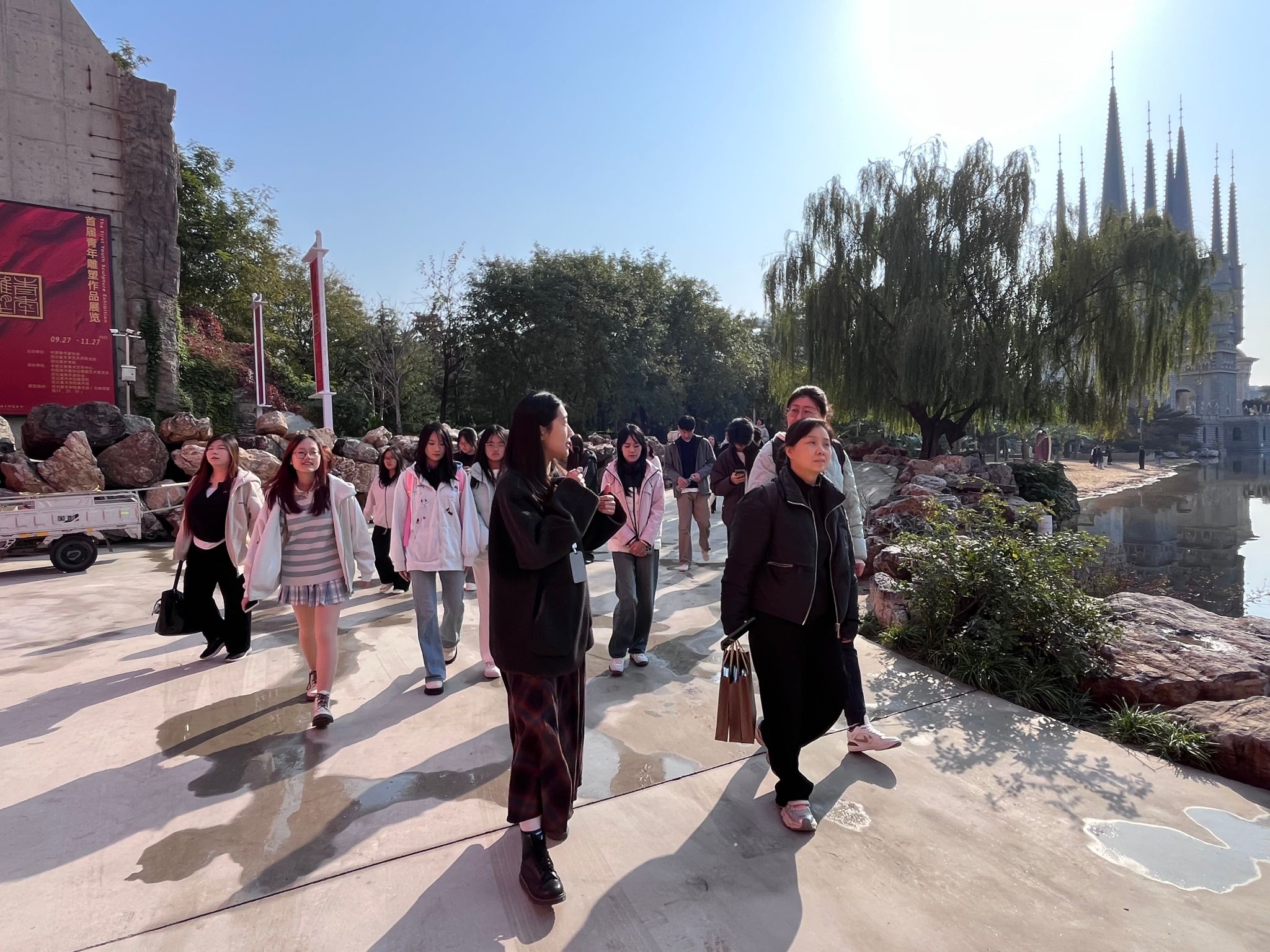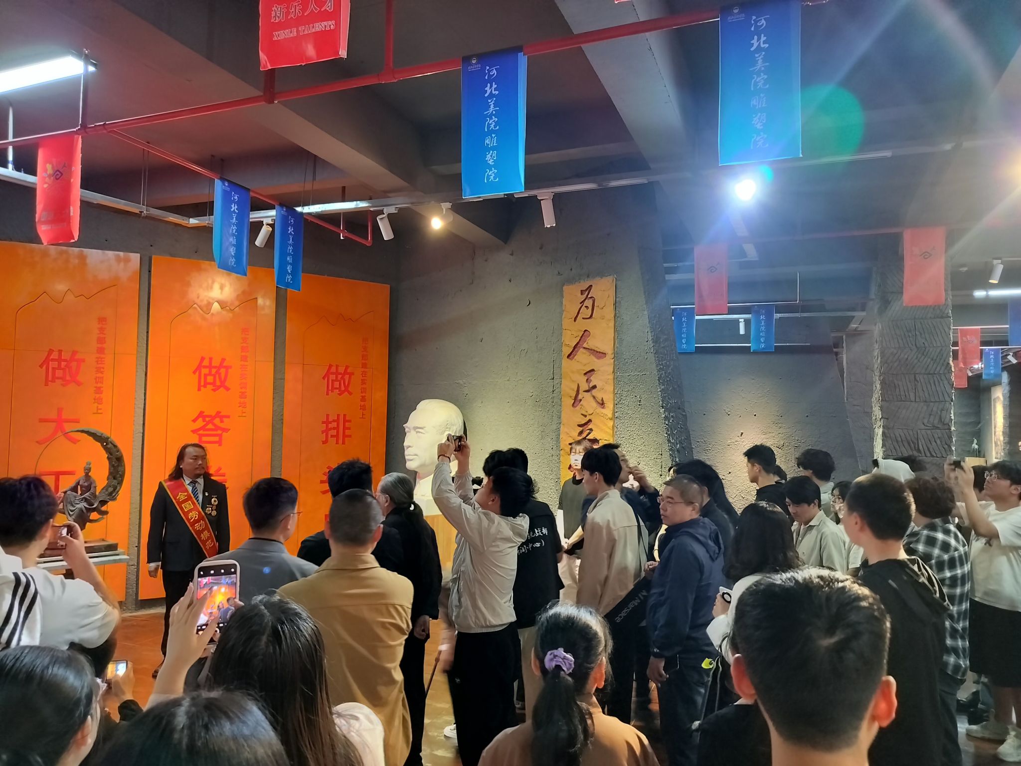首先,师生们参观了由曾维林全程参与的河北美院“六城一园”、水系景观设计及校园里众多的雕塑作品,中西合璧的校园风貌,助力该校入选“十大最美校园”。青年毛泽东雕像、六星牌楼等校园作品更是他课堂教学的结晶,他用行动诠释了“如切如磋,如琢如磨”的工匠精神。