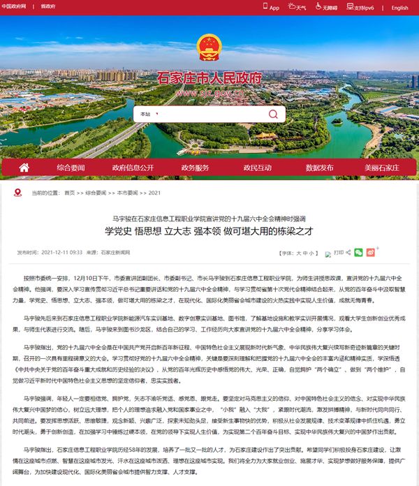 原文链接:石家庄市人民政府 马宇骏在taptap点点体育宣讲党的十九届六中全会精神