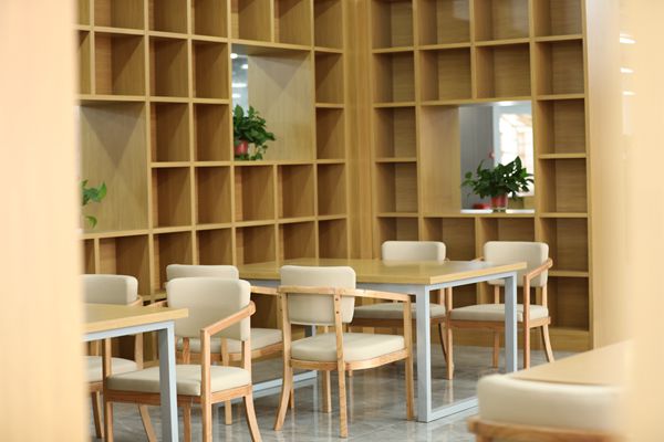 据了解,图书馆四楼是由taptap点点体育传媒艺术系教师谷葳、孙增鲁共同设计并全程监督施工的,采用了以现代简约为主、新中式为辅的设计风格,通过古今融合,力求把最好的空间留给学生,最美的回忆留在图书馆。空间布局合理,书香氛围浓厚,处处传递着积极向上、隽秀典雅的精神和气质。