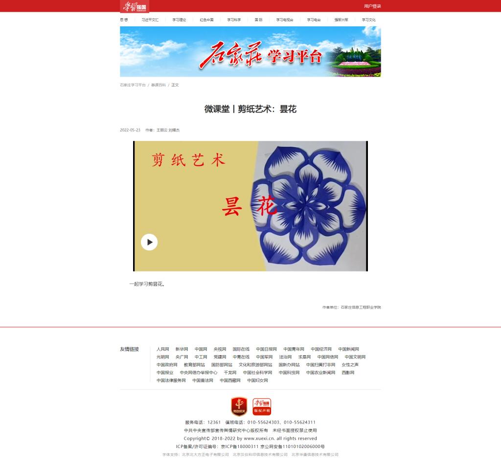 上一条:【学习强国】微课堂丨剪纸艺术:小苍兰