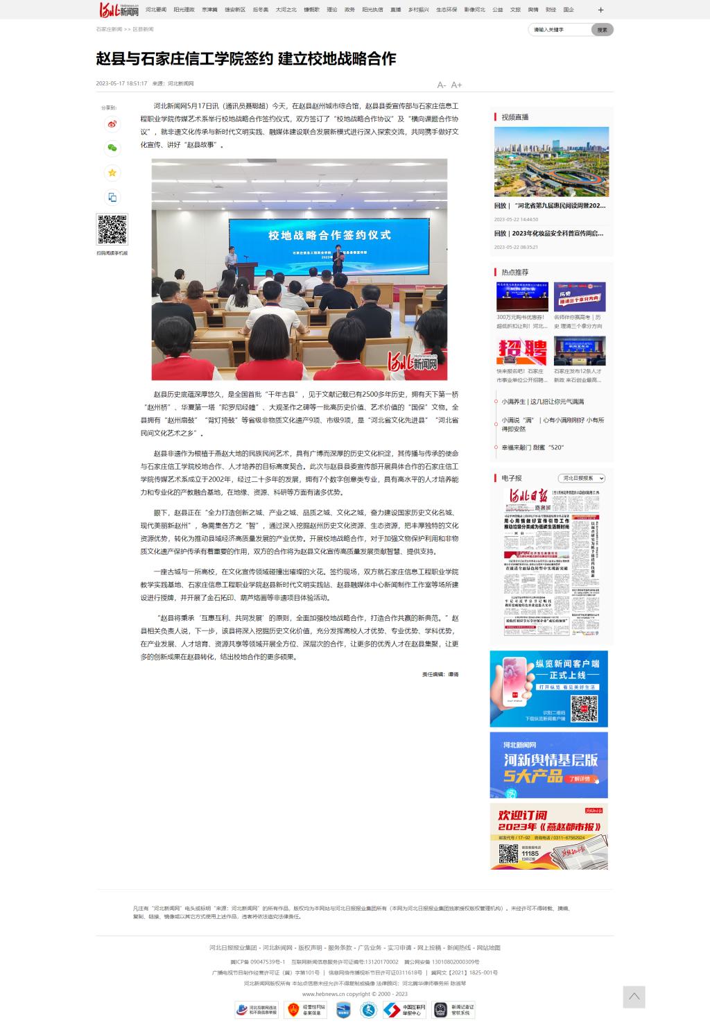 赵县与石家庄信工学院签约 建立校地战略合作