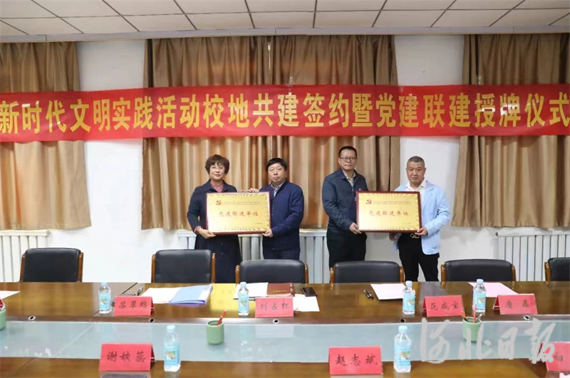 活动中,张家庄镇人民政府代表和石家庄信息工程学院网络与通信工程系代表分别在《新时代文明实践活动校地共建意向书》上签字并举行了授牌仪式。