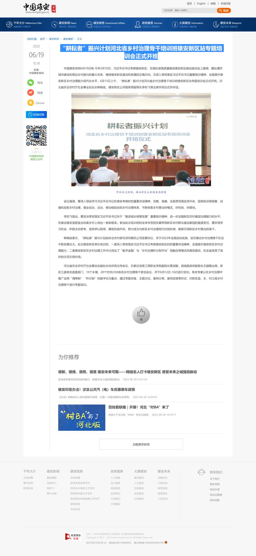 【新华网】“耕耘者”振兴计划河北省乡村治理骨干培训班雄安新区站专题培训会正式开班