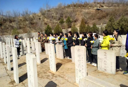 青山埋忠骨,鲜花寄哀思。为缅怀革命先烈,继承光荣传统,3月22日,基础部党总支一行16人,在党总支书记张娜的带领下来到平山县下刘家坪村开展祭扫活动,祭奠抗日英烈。