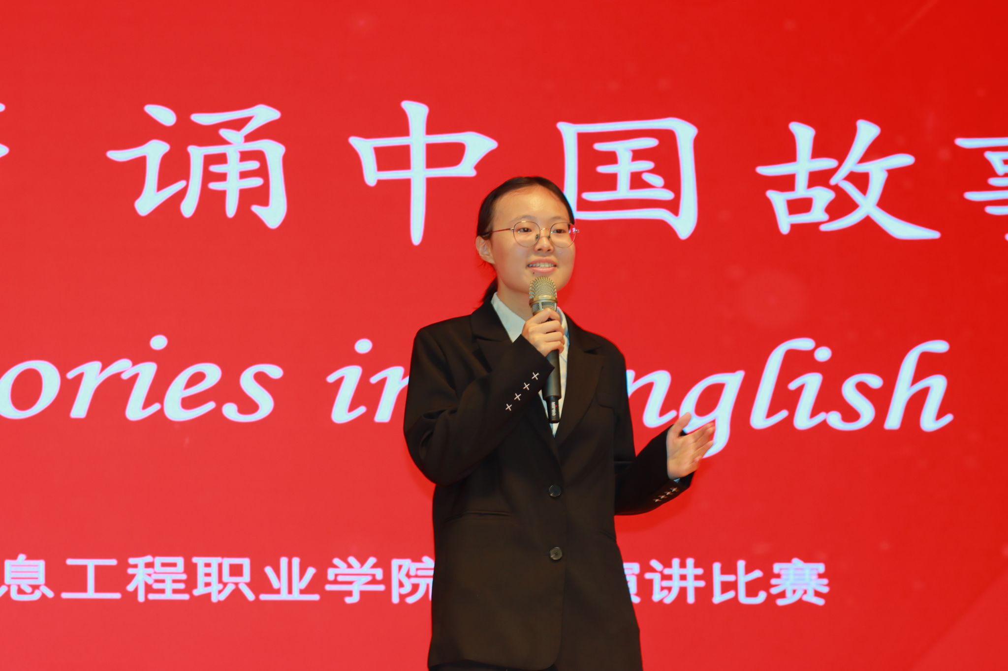 为贯彻落实“增强中华文明传播力影响力,坚守中华文化立场,讲好中国故事、传播好中国声音,展现可信、可爱、可敬的中国形象,推动中华文化更好走向世界”的重大决策部署,2025年职业教育活动周期间,由学生处(团委)、基础部主办,基础部英语教研室、英语社承办的2025年“以英语之声诵中国故事”英语演讲比赛决赛,于5月15日在图书馆一楼报告厅隆重举行。