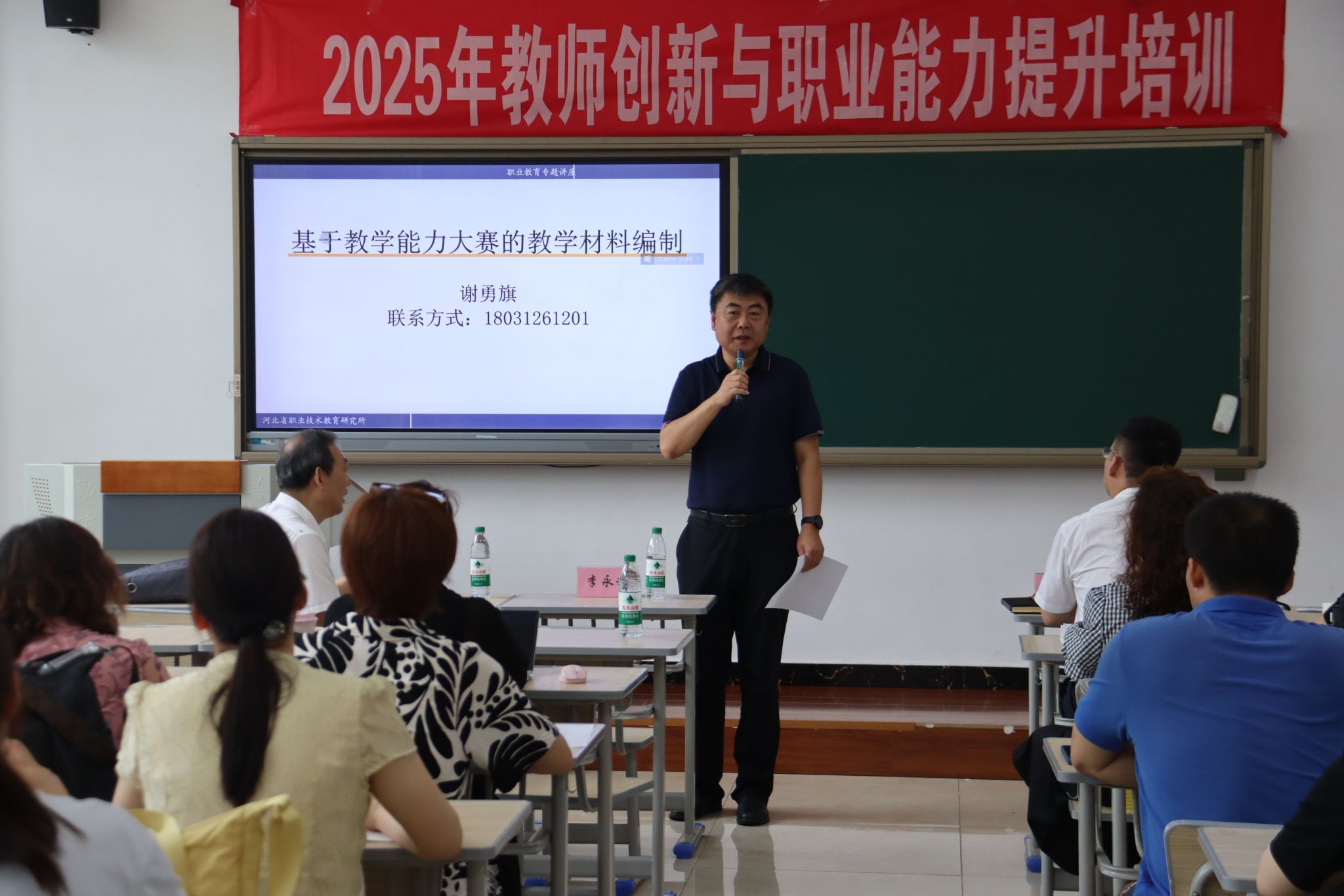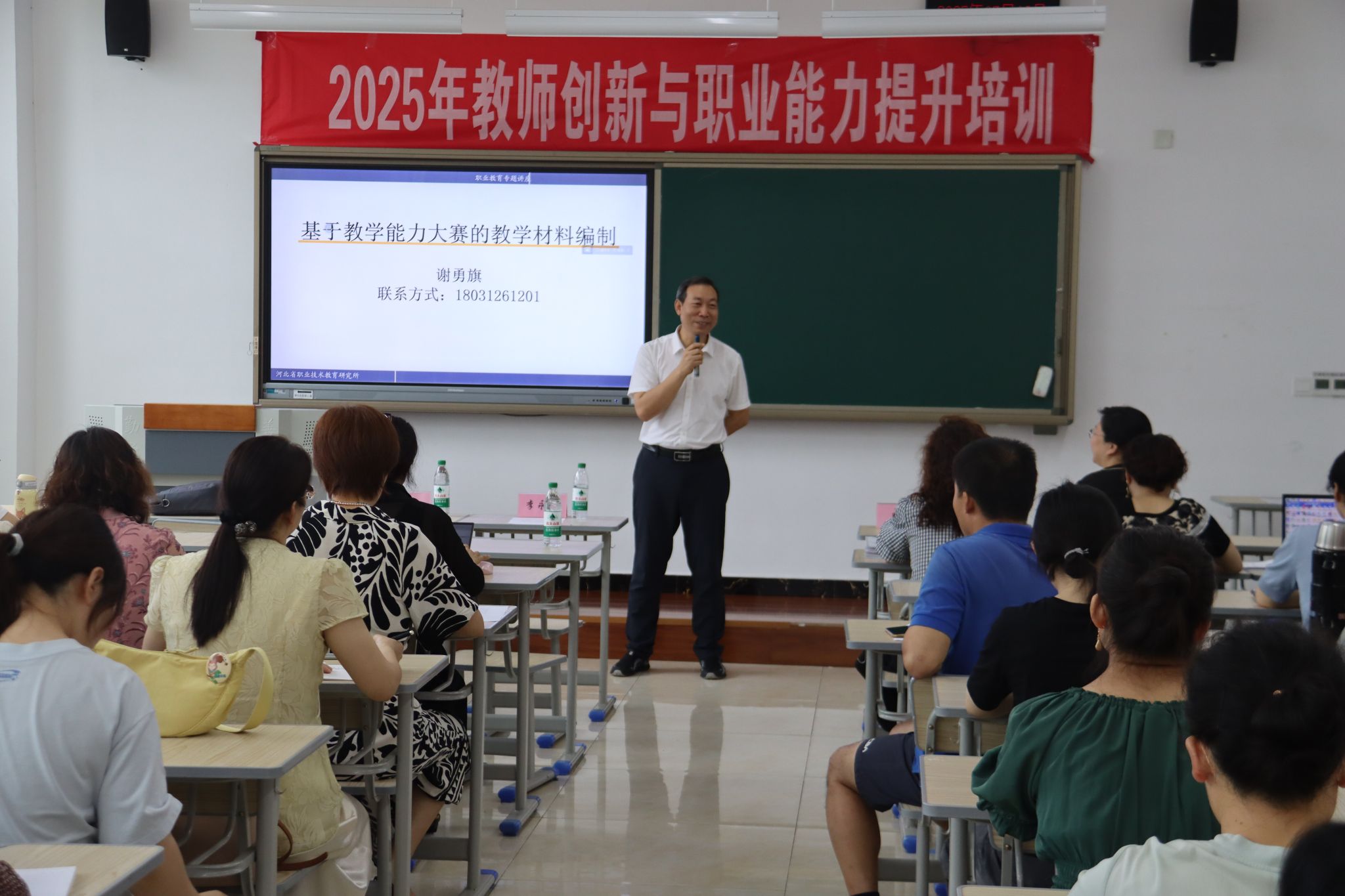 7月3日上午,河北师范大学职业技术教育研究所副所长谢勇旗教授讲授了主题为“基于教学能力大赛的教学材料编制”的讲座。谢教授结合自身丰富的教学经验和对教学能力大赛的深入研究,详细解读了教学材料编制的关键要素,包括教学设计、教学实施报告、教案编写以及教学资源开发等方面的要求与技巧。为教师在教学材料编制方面提供了清晰的思路和实用的方法。