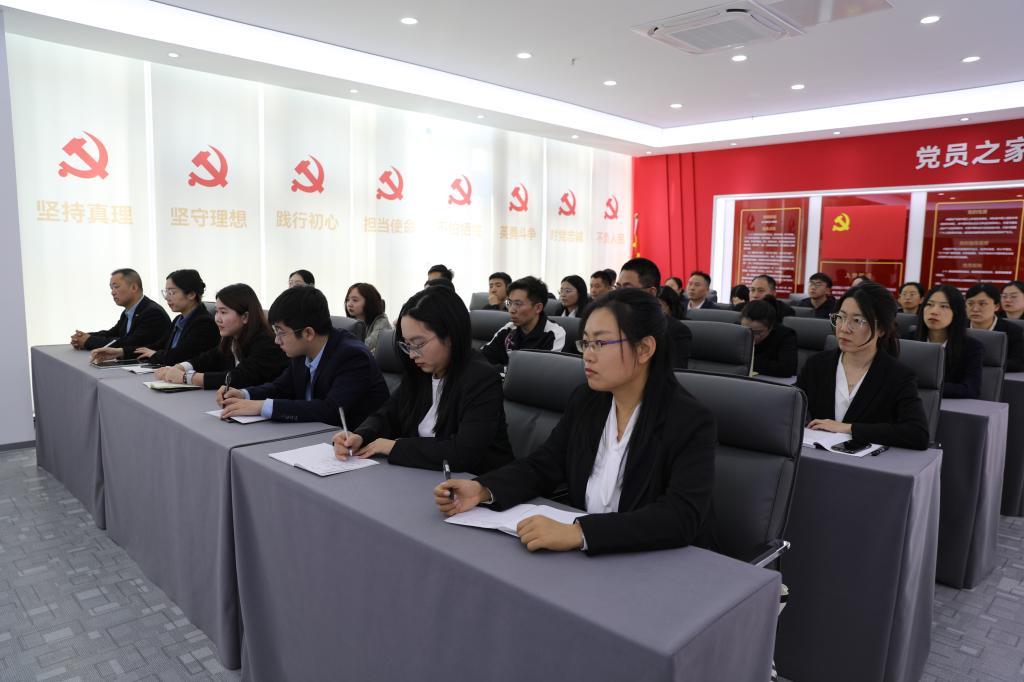 32名新入职教师面向校旗进行入职宣誓,新入职教师代表刘凯欣表示将时刻保持学习的态度,不断提升自己的专业水平和教育教学能力,为国家培养出更多的优秀人才。
