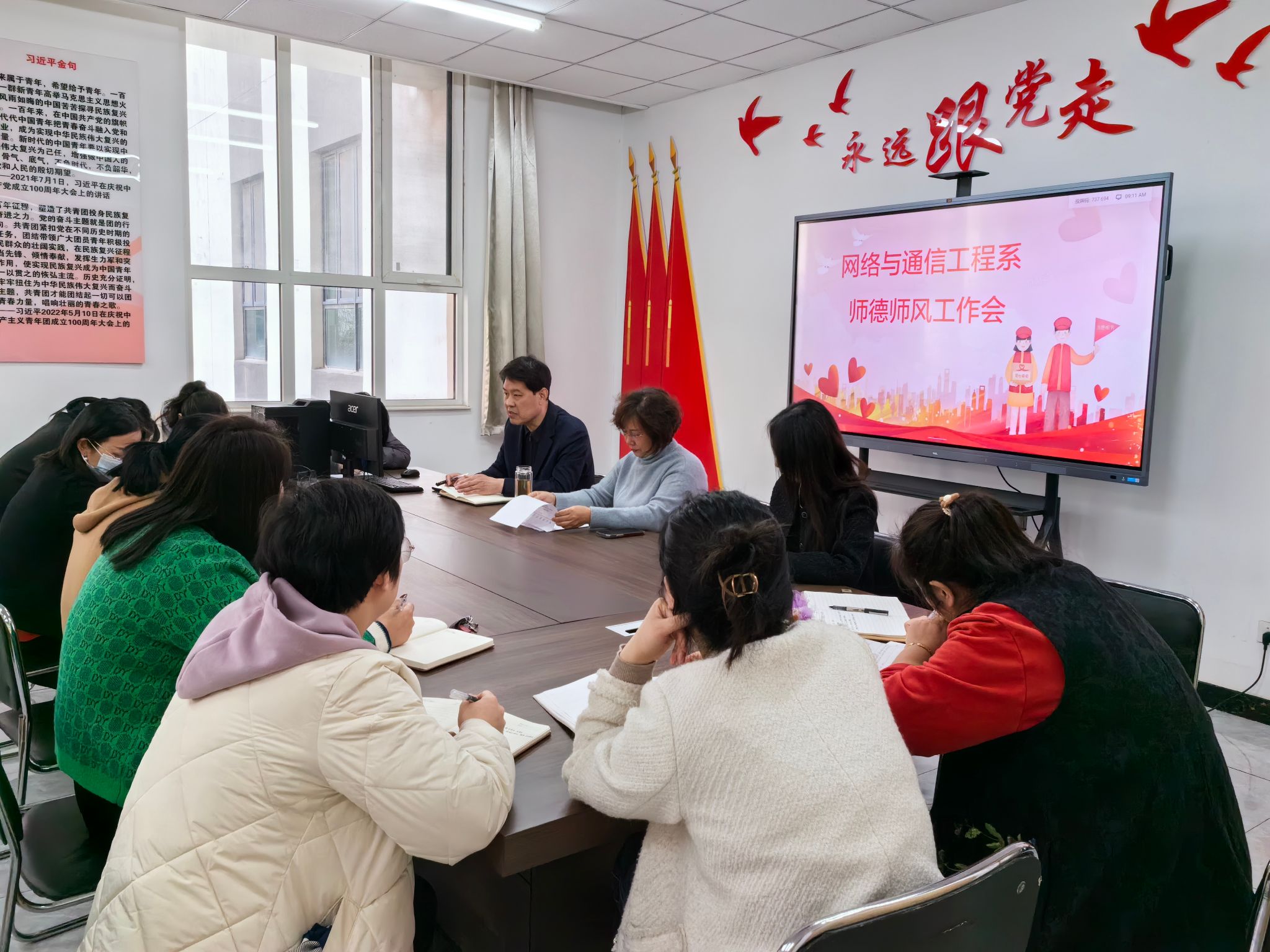 3月21日下午,网络与通信工程系在知行楼108党员活动室召开师德师风建设工作会,组织学习了河北省教育厅有关师德师风工作的文件精神和要求,通报了教育系统六起违背师德师风的案件。