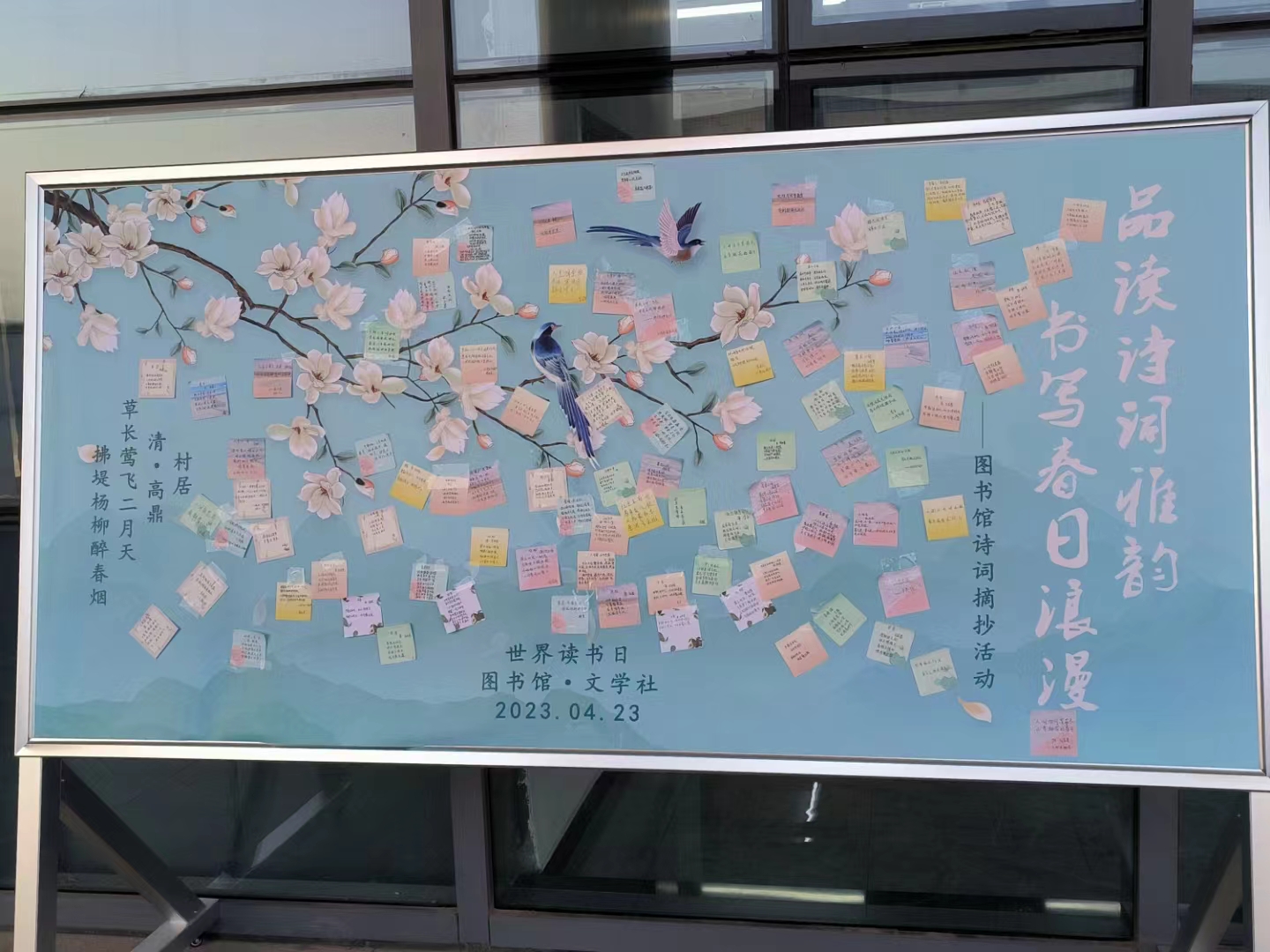 本次活动的顺利展开,通过重温古诗词,在继承和发扬中华优秀传统文化的同时,感受诗人的浪漫性情。鼓励同学们提笔书写属于自己的春日浪漫,为“4•23世界读书日”增添一抹色彩。