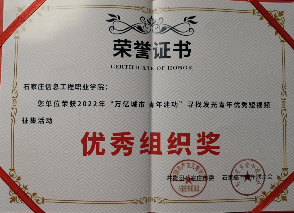 taptap点点师生在2022年“万亿城市 青年建功”寻找发光青年优秀短视频活动中荣获二等奖一项,三等奖八项,学院荣获优秀组织奖。