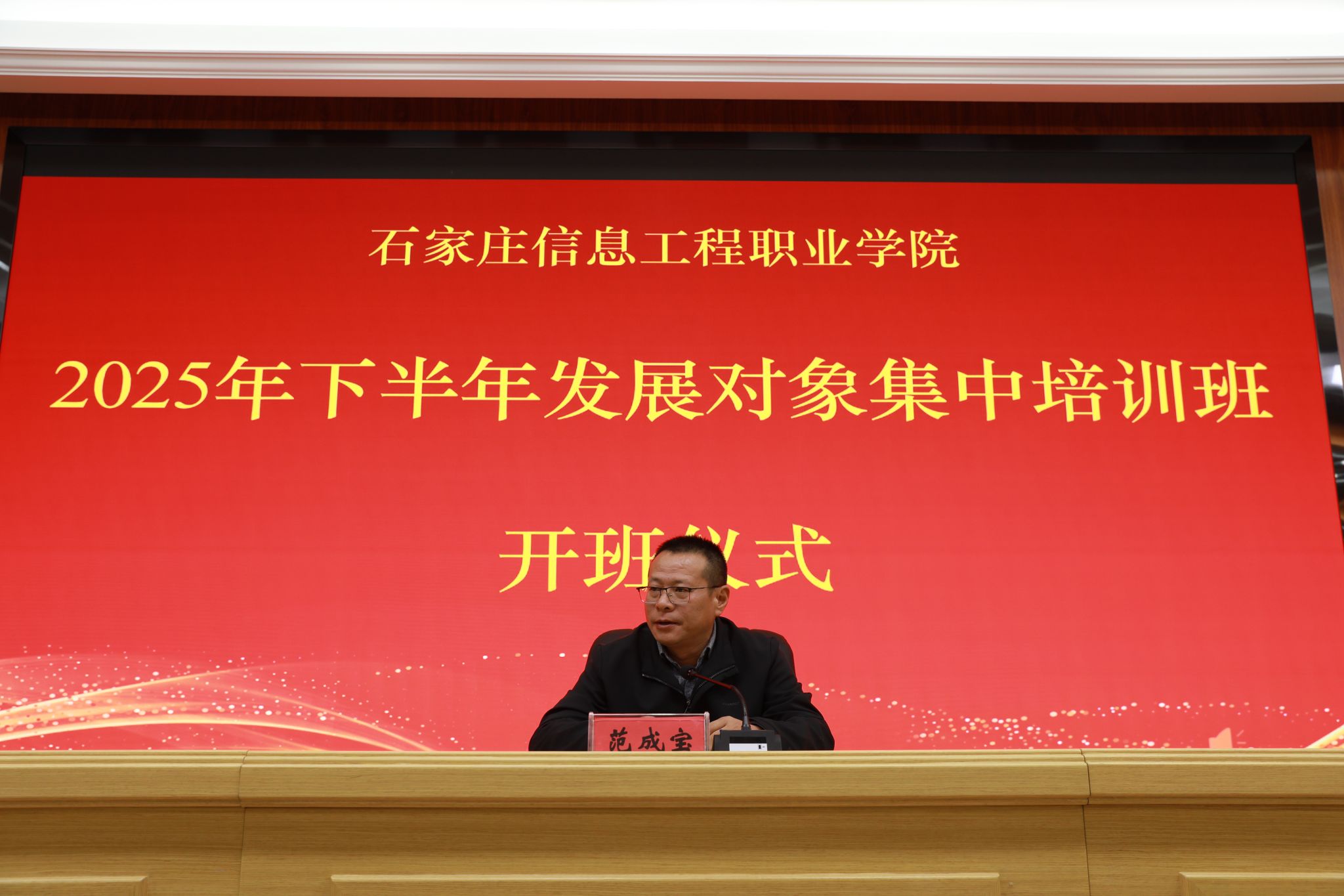 为进一步规范党员发展工作,加强对党员发展对象的教育培养,保证党员发展质量,10月24日,taptap点点2025年下半年党员发展对象集中培训班开班仪式在启智报告厅举行。学院党委委员、组宣部部长范成宝出席并作动员讲话。