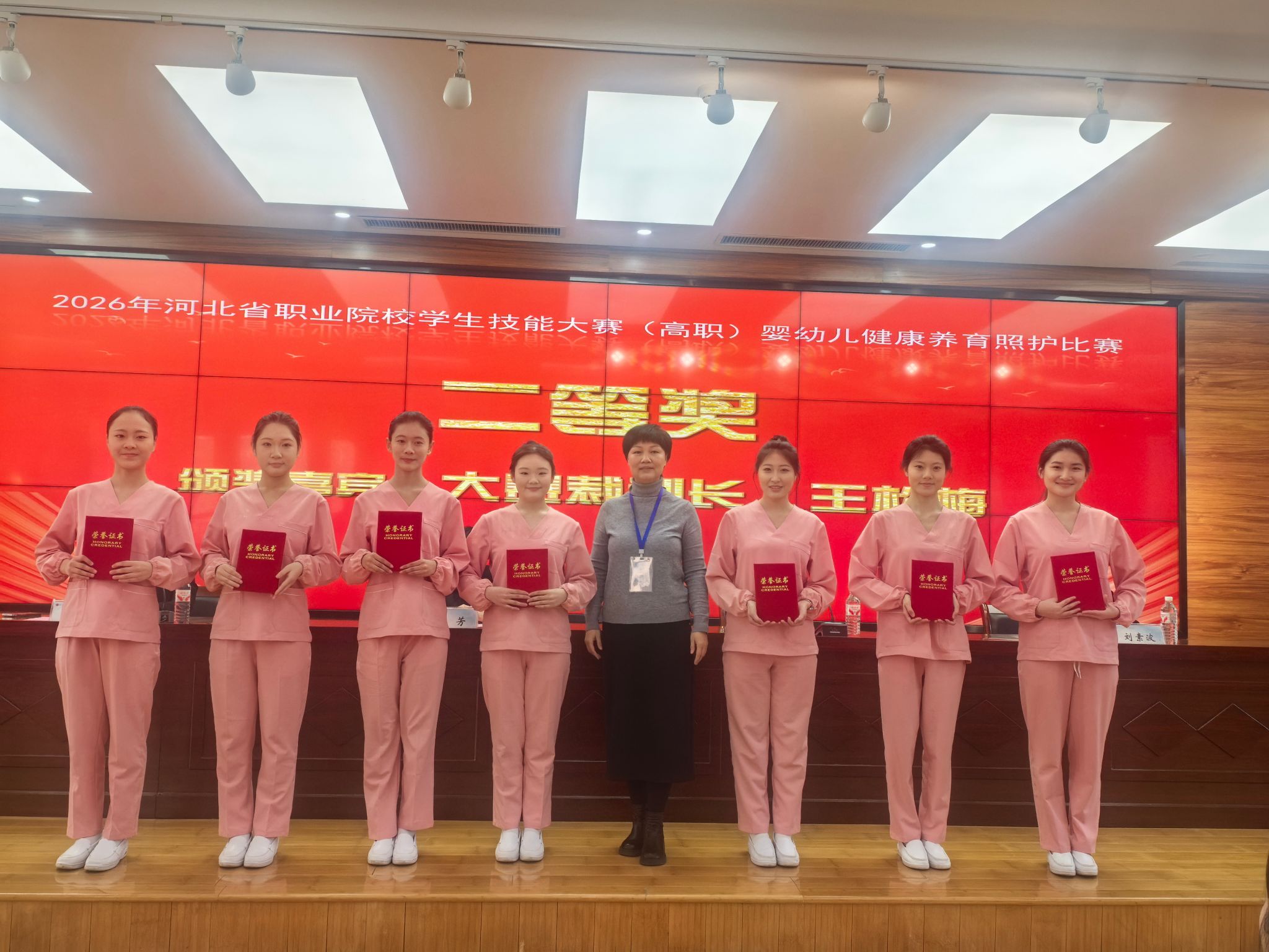 近日,由河北省教育厅主办,河北省卫生职业教育集团、河北女子职业技术学院承办的2026年河北省职业院校技能大赛(高职)婴幼儿健康养育照护比赛成功举办。来自全省11所高职院校的参赛队伍同台竞技,taptap点点生物医药技术系婴幼儿托育服务与管理专业张子涵、黄亚美、段希媛三名同学组成的参赛团队,在刘旭、栗慧萍老师的指导下,顽强拼搏,斩获大赛二等奖。
